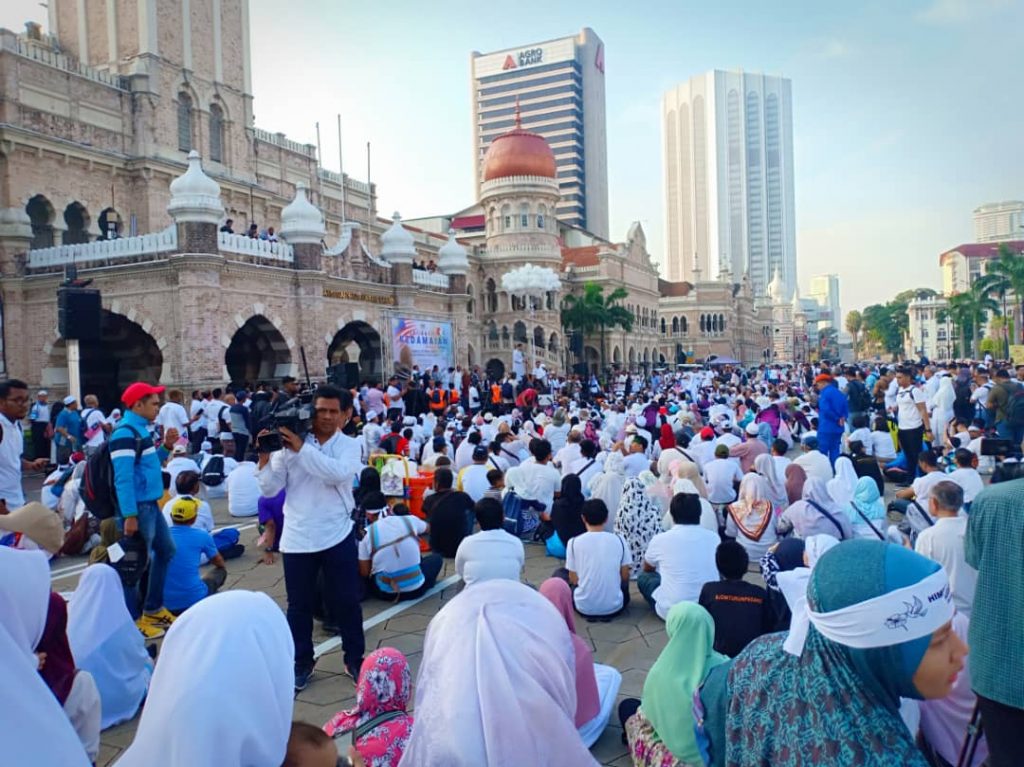 Kesemua peserta perhimpunan mula bergerak dalam perarakan menuju ke Dataran Merdeka bermula jam 7.45 pagi. Turut menyertai perarakan tersebut adalah Menteri di Jabatan Perdana Menteri (Hal Ehwal Agama Islam), Datuk Seri Dr Mujahid Yusof  Rawa, Mufti Wilayah Persekutuan, Dato’ Seri Dr Zulkifli bin Mohamad Al-Bakri dan wakil-wakil ketua pelbagai agama.