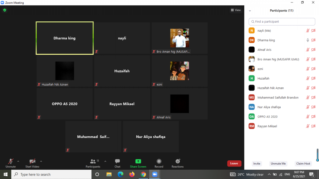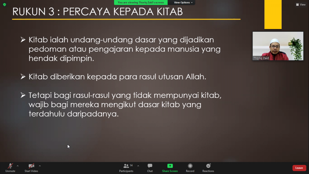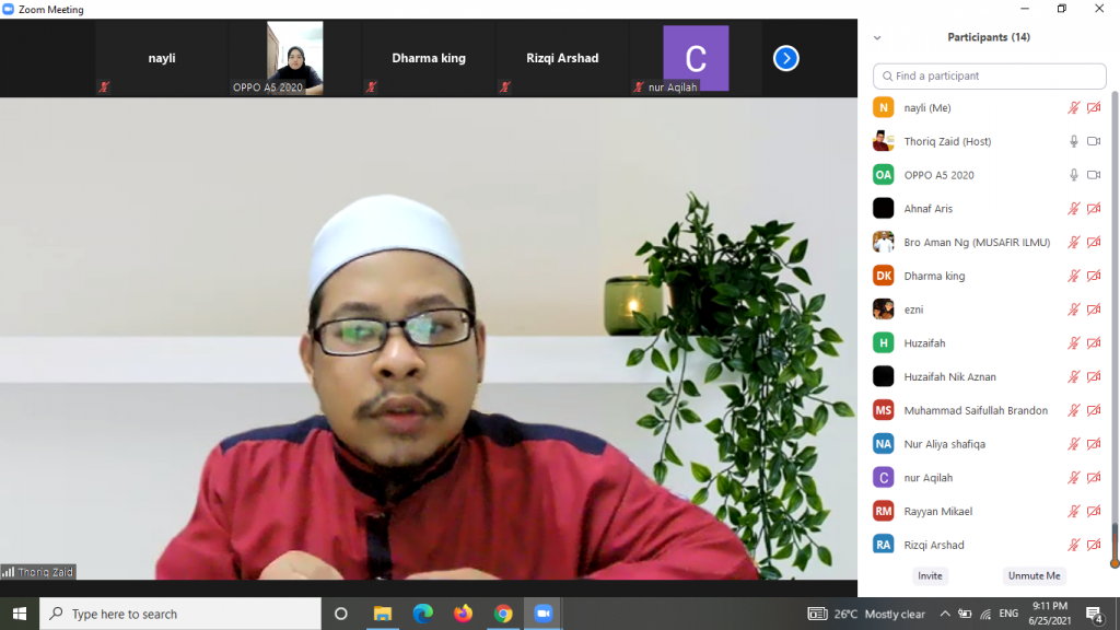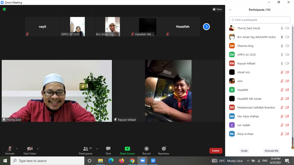 25 Jun 2021- Telah berlangsung kelas fardhu ain untuk muallaf melalui aplikasi zoom. Kelas ini dikendalikan oleh Ustaz Thoriq dengan tajuk Rukun Iman Siri 3.